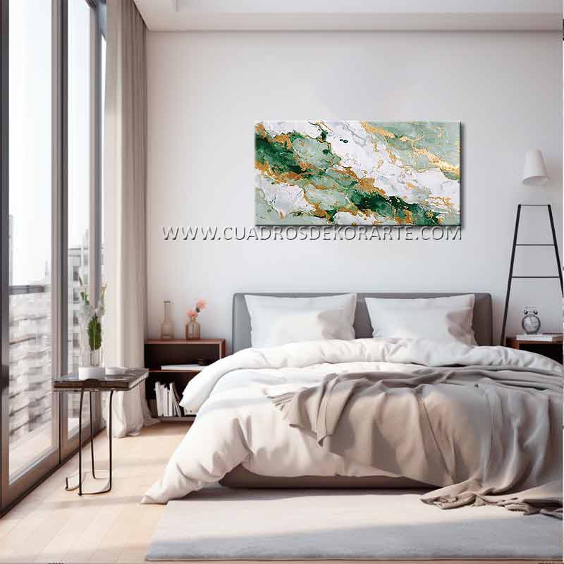 La pintura abstracta Viento es una obra de arte hecha a mano con una medida de 120x60cm. pintado a mano utilizando pinturas de excelente calidad, cuenta con una hermosa combinación de colores que incluye el blanco, verde y dorado.